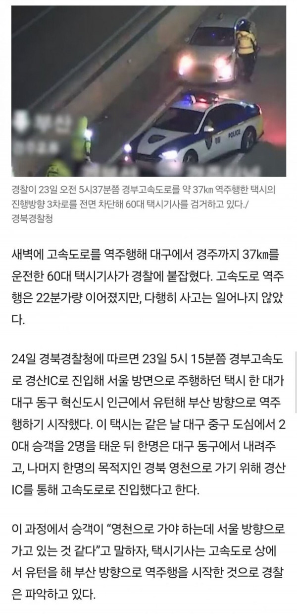 20분간 고속도로 역주행한 택시