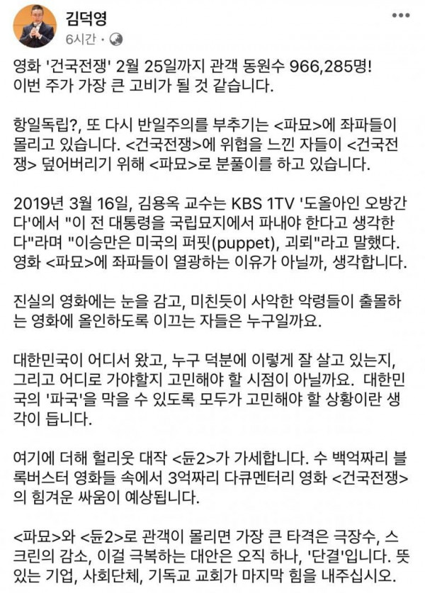 파묘는 좌파영화라고 저격하는 건국전쟁 감독