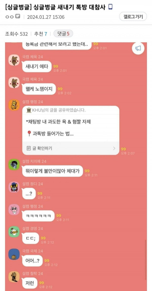 새내기 채팅방 대참사..체대생 패는 치대생