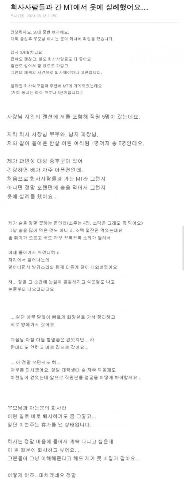 회사 MT에서 바지에 설사한 여자