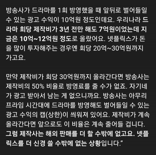 요즘 시청률 잘나와도 드라마 적자인 이유