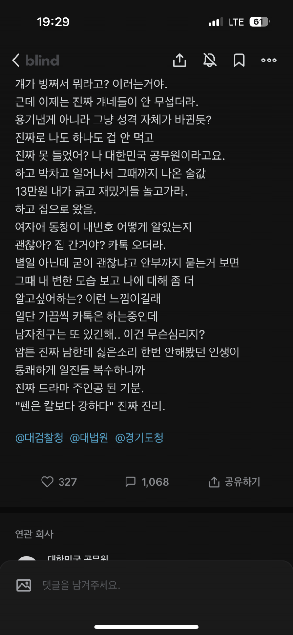 오늘자 싱글벙글 블라인드 공무원