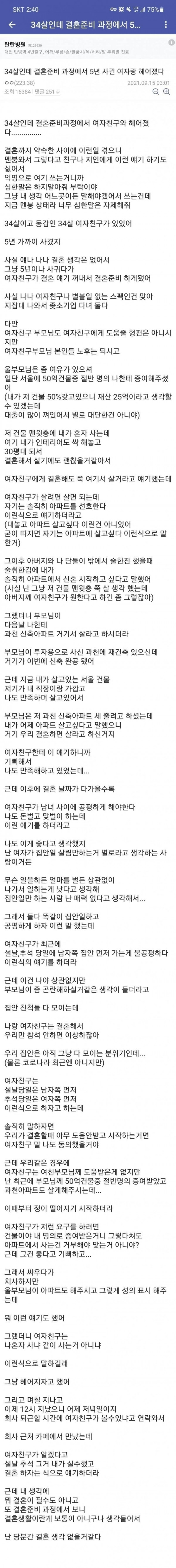 34살 결혼준비 과정에서 5년 사귄 여자랑 헤어진 남자