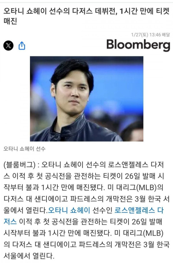 Mlb 서울시리즈 1시간만에 매진 페이지 정보 작성자 비스포옥크 댓글 0건 조회 2,770회 작성일 24-11-20 12:55 목록 답변 글쓰기 게시판 리스트 옵션 수정 삭제 본문 Mlb 서울시리즈 1시간만에 매진 쿠팡 파트너스 활동의 일환으로, 이에 따른 일정액의 수수료를 제공받습니다. 이전글가장 위험한 익스트림 스포츠 24.11.20 다음글공익이랑 여직원의 갈등 24.11.20 댓글 0 댓글목록 등록된 댓글이 없습니다.