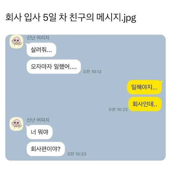 회사 입사 5일 차 친구의 메시지.jpg2