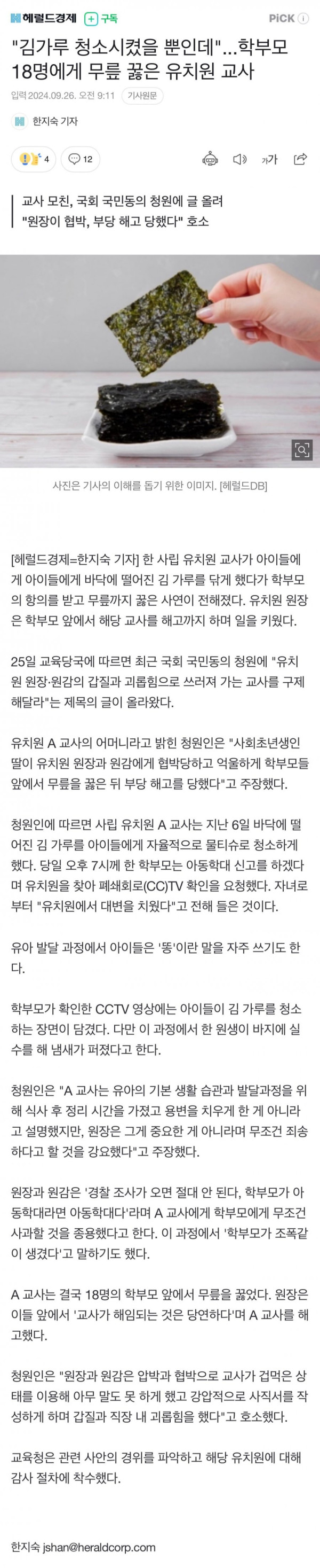 김가루 청소시켰다고 무릎 꿇은 유치원 교사6 > 유머/감동