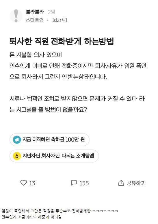 퇴사한 직원 전화받게 하는 방법좀1