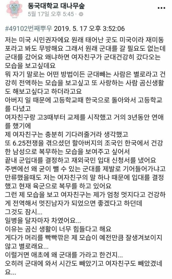 여친말만듣고 군입대한 남자6 페이지 정보 작성자 루이비퉁퉁 댓글 0건 조회 917회 작성일 25-11-03 22:45 목록 답변 글쓰기 게시판 리스트 옵션 수정 삭제 본문 여친말만듣고 군입대한 남자6 쿠팡 파트너스 활동의 일환으로, 이에 따른 일정액의 수수료를 제공받습니다. 이전글헬스장에서의 빈말1 25.11.03 다음글오늘 베스트글 근황 (2022-12-05 월요일) 25.11.03 댓글 0 댓글목록 등록된 댓글이 없습니다.