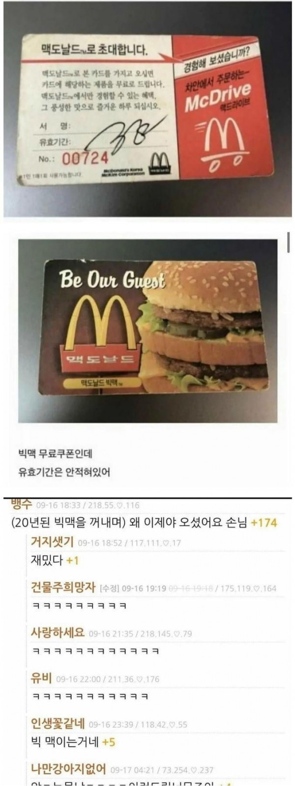 20년 존버한 맥도날드 빅맥 무료 쿠폰 페이지 정보 작성자 티티티티파파파파 댓글 0건 조회 2,874회 작성일 24-04-01 11:48 목록 답변 글쓰기 게시판 리스트 옵션 수정 삭제 본문 . 쿠팡 파트너스 활동의 일환으로, 이에 따른 일정액의 수수료를 제공받습니다. 이전글엄마와 딸 24.04.01 다음글해리포터 작가가 처음에 퇴짜를 여러번 맞은 이유 24.04.01 댓글 0 댓글목록 등록된 댓글이 없습니다.