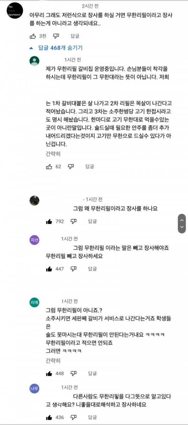어느 사장님이 말하는 무한리필의 뜻