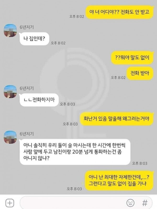 말없이간 친구가 잘못한거다  vs 남친이랑 통화 많이한 애가 잘못한거다