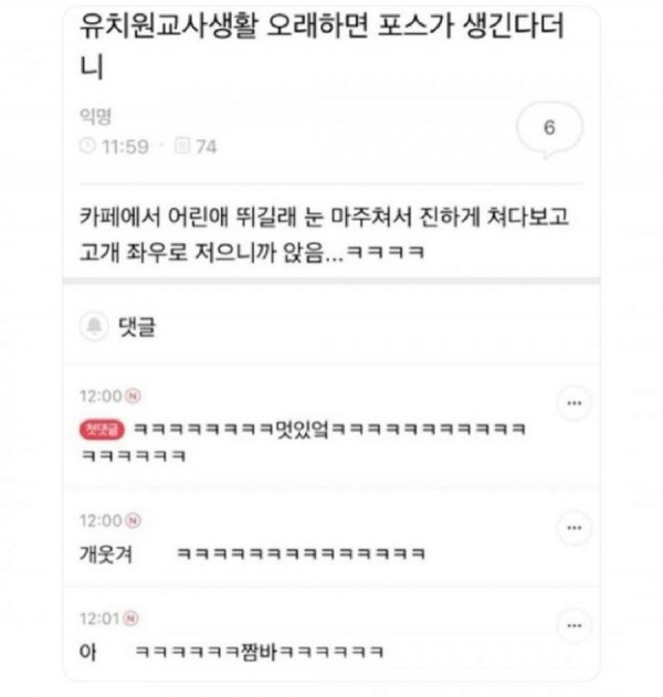 유치원교사의 카리스마 페이지 정보 작성자 원가적통 댓글 0건 조회 3,395회 작성일 24-05-08 12:29 목록 답변 글쓰기 게시판 리스트 옵션 수정 삭제 본문 장인이 됐네요 쿠팡 파트너스 활동의 일환으로, 이에 따른 일정액의 수수료를 제공받습니다. 이전글인도 전철에서 주의 할점 24.05.08 다음글연인사이에 오빠라고 부르면 안되는 이유 24.05.08 댓글 0 댓글목록 등록된 댓글이 없습니다.