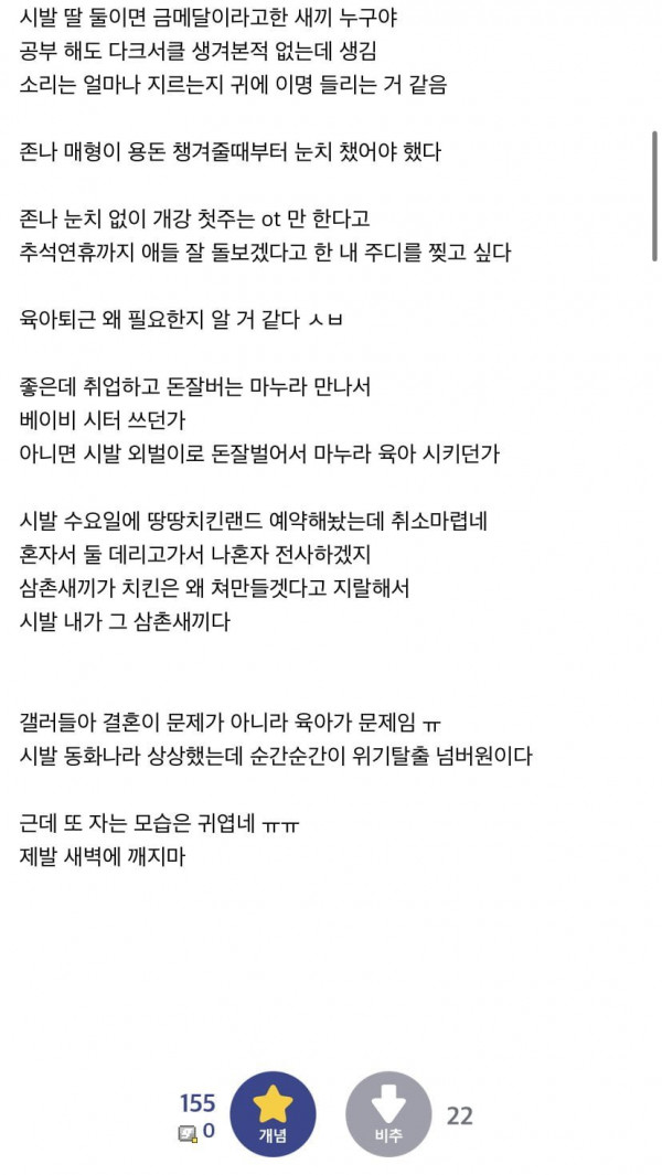 조카 돌보다가 죽을거 같다는 삼촌
