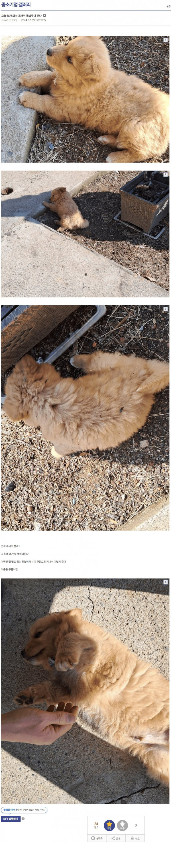 강아지 돌봐주러 연휴에 출근한 중소갤러 jpg 페이지 정보 작성자 MIWOONORY 댓글 0건 조회 2,394회 작성일 24-09-26 14:17 목록 답변 글쓰기 게시판 리스트 옵션 수정 삭제 본문 강아지 돌봐주러 연휴에 출근한 중소갤러 jpg 쿠팡 파트너스 활동의 일환으로, 이에 따른 일정액의 수수료를 제공받습니다. 이전글와이프가 어디서 운전을 배웠는지 궁금한 남편 24.09.26 다음글. 24.09.26 댓글 0 댓글목록 등록된 댓글이 없습니다.