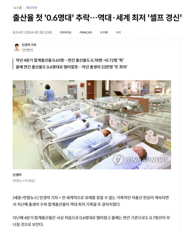 출산율 0.6명대는 재외동포 포함한 수치 > 유머/감동