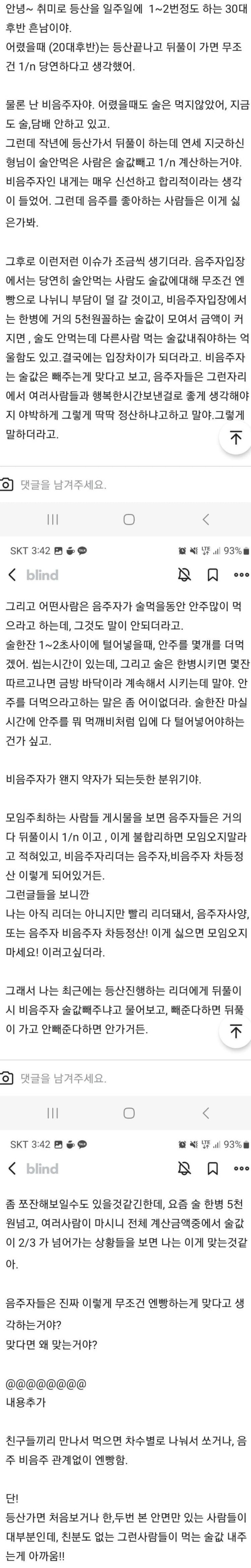 동호회 술값 N빵 논쟁