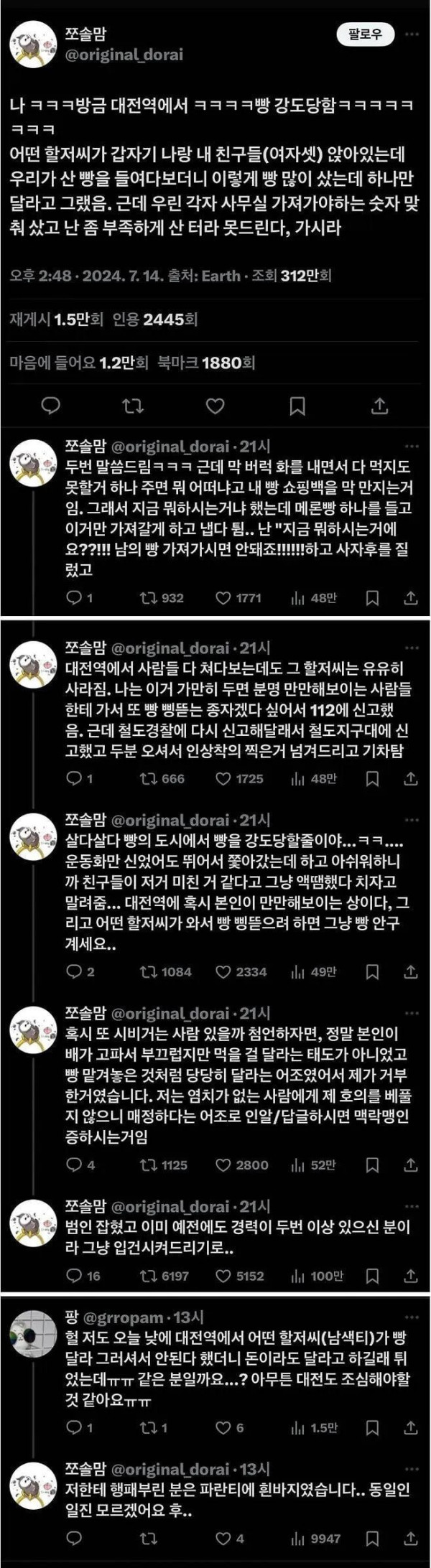 대전역에 나타난 빵도둑놈.