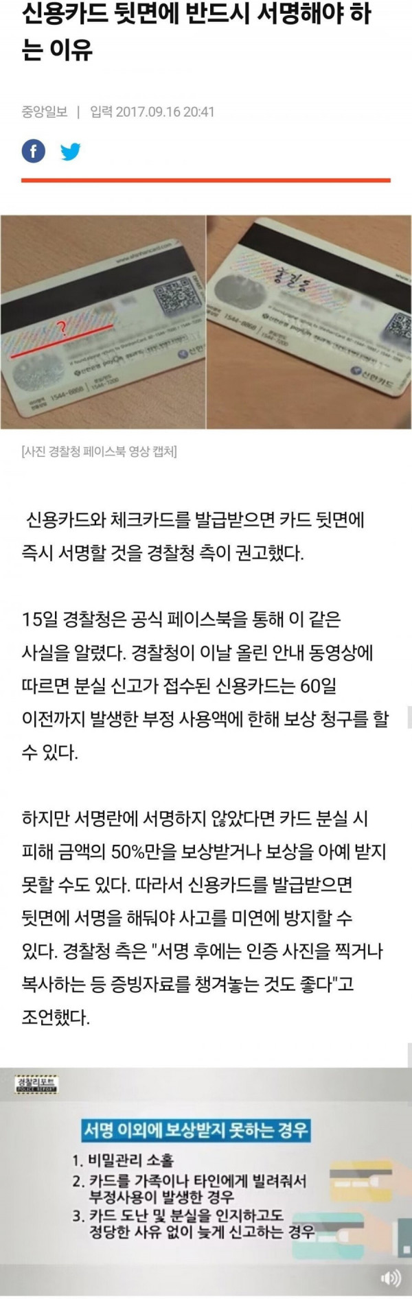 신용카드 뒷면에 서명을 꼭 해야하는 이유