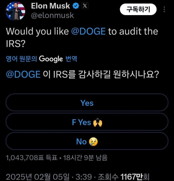 일론 머스크 "미국 국세청을 털고 싶은데 동의함?"