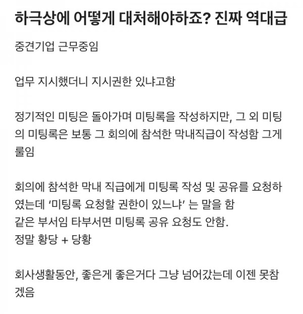 블라인드에서 논란중인 [하극상에 어땋게 대처해야하죠?]6