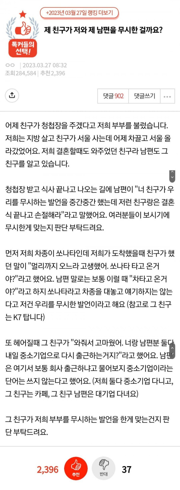 친구가 저와 제 남편을 무시한걸까요?14