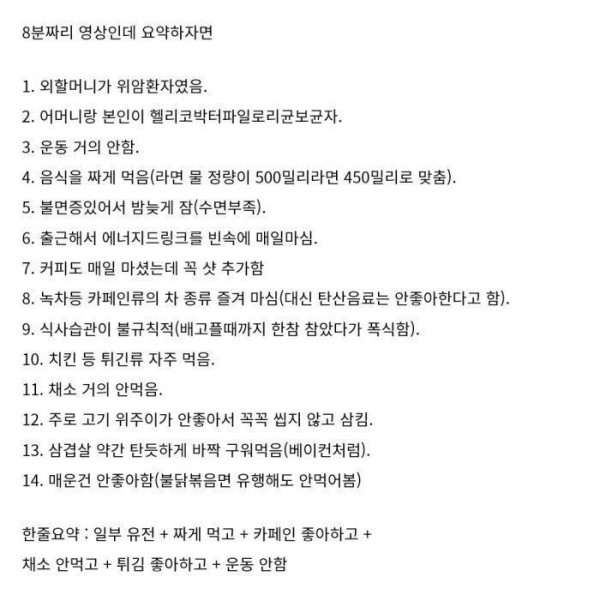 위암 환자의 식습관